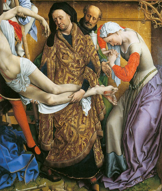 | Ausschnitt aus Rogier van der Weydens Kreuzabnahme mit Nikodemus und Maria Magdalena |
